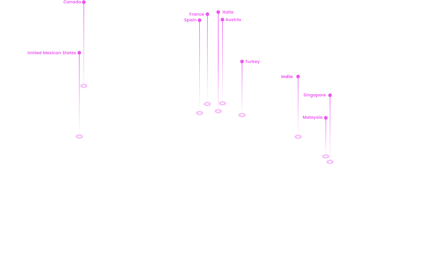Countries served: Japan, Singapore, Philippines, Ma→laysia, India; France, Italy, Germany, Austria, Türkiye, Spain, Morocco; USA, Ca nada, Mexico